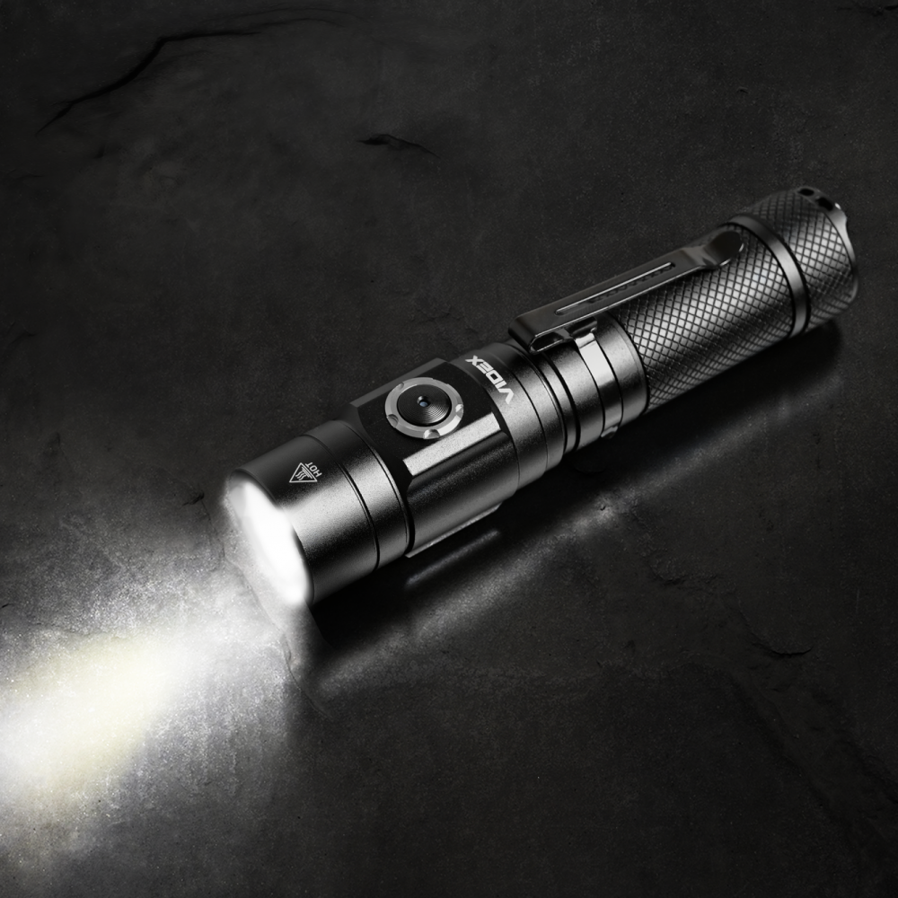 - Зручне та інтуїтивне керування однією кнопкою: система натискань дозволяє легко вмикати/вимикати пристрій, перемикатися між режимами, активувати стробоскоп, блокувати кнопку від випадкового натискання та перевіряти рівень заряду.